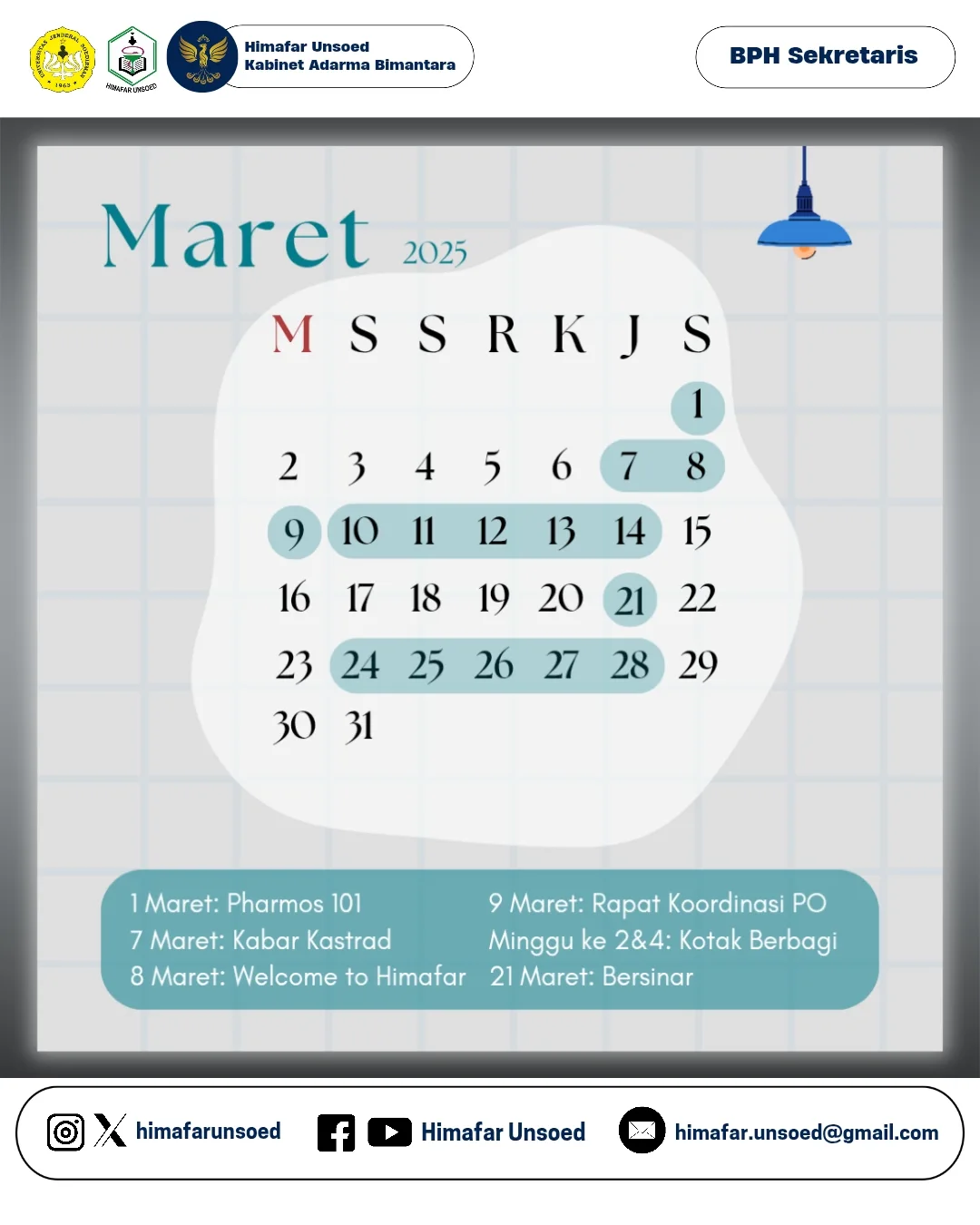 Kalender Kegiatan Himafar Unsoed Maret 2025