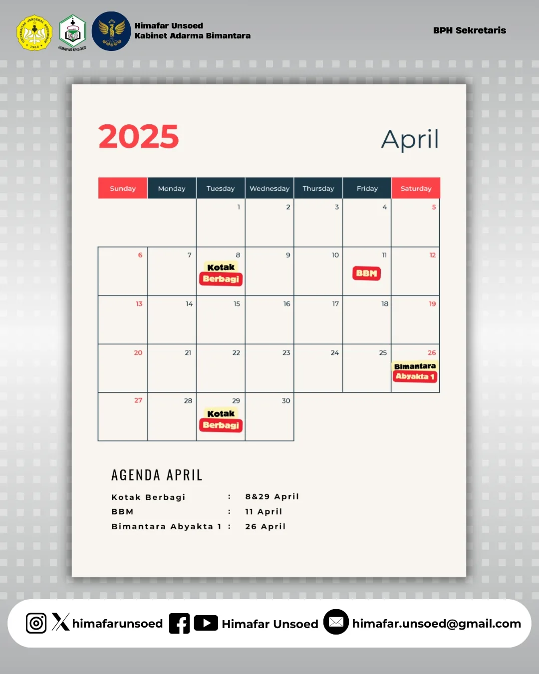 Kalender Kegiatan Himafar Unsoed Mei 2025