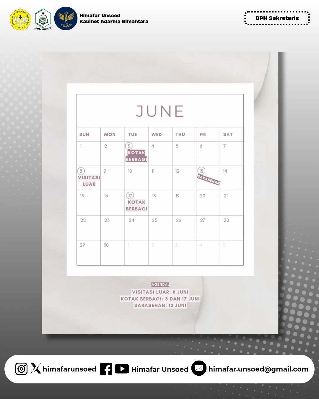 Kalender Kegiatan Himafar Unsoed Juni 2025