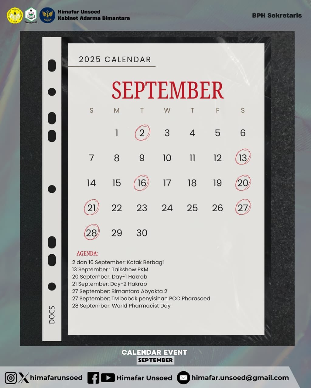 Kalender Kegiatan Himafar Unsoed Agustus 2025
