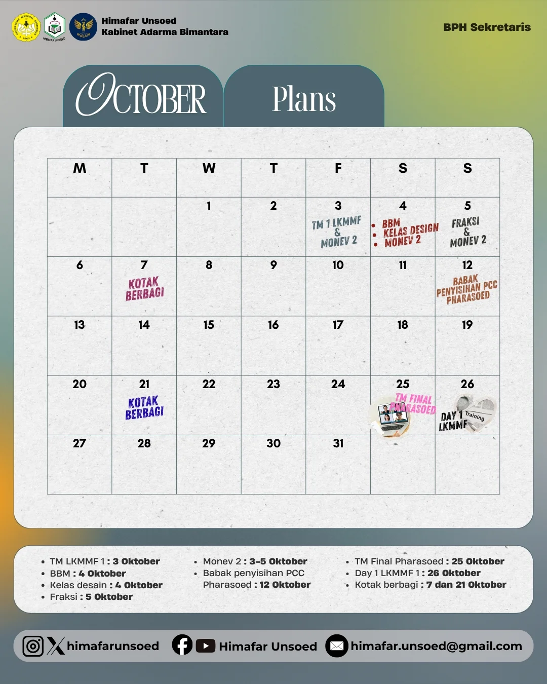 Kalender Kegiatan Himafar Unsoed Oktober 2025