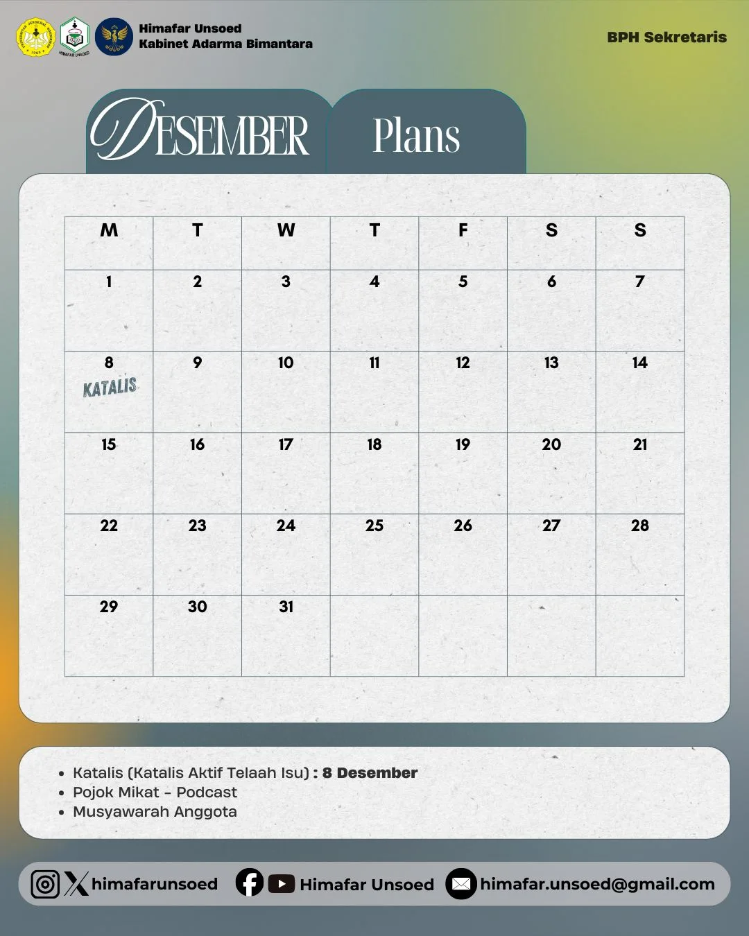Kalender Kegiatan Himafar Unsoed Desember 2025